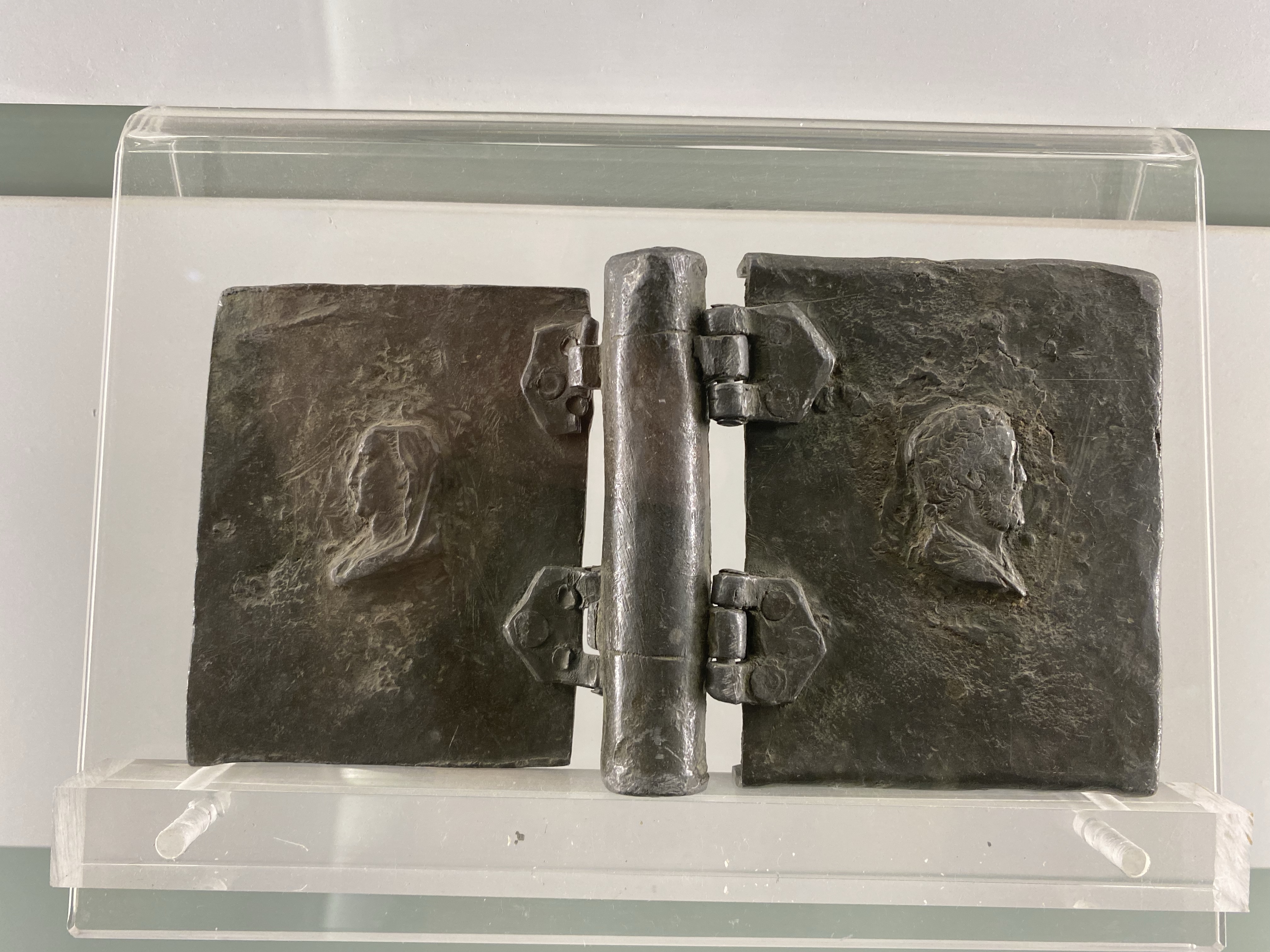 La lamina era stata arrotolata e inserita all’interno di un’urna cineraria: incisa sui due lati, raffigura il demone Seth dalla testa d’asino e gli aurighi in tenuta di gara, con le braccia e le gambe legate.