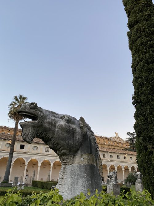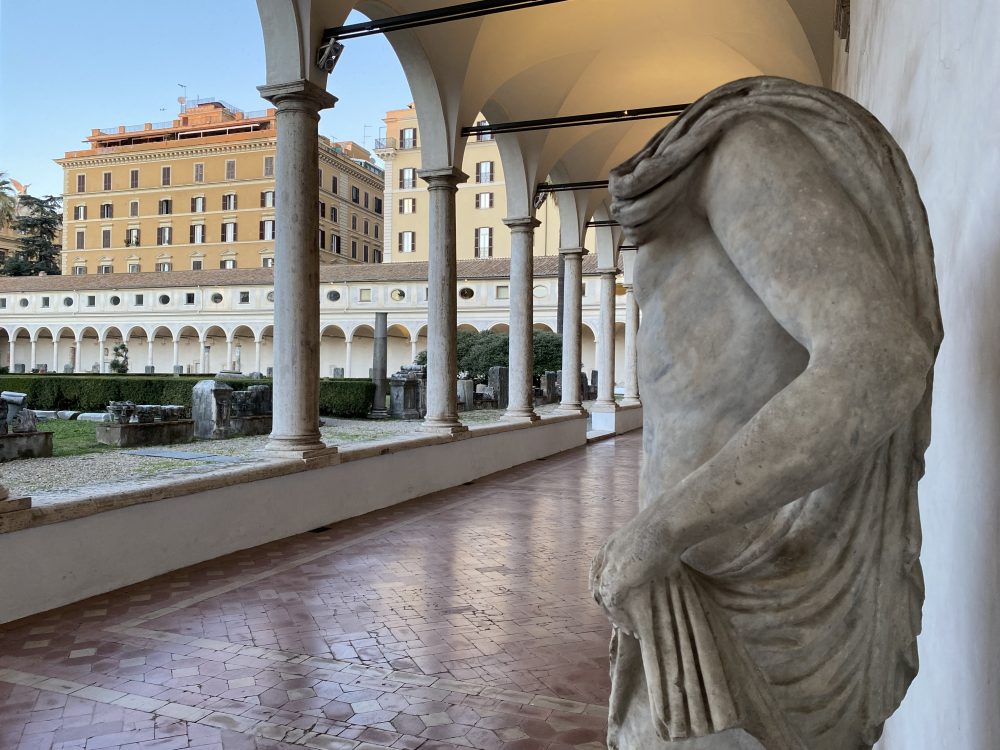 Il chiostro è stato usato fin dal 1889 per l’esposizione museale, ma i trasferimenti Di alcune sculture a Palazzo Massimo e a Palazzo Altemps hanno modificato l’allestimento e nuove opere sono state collocate al loro posto.