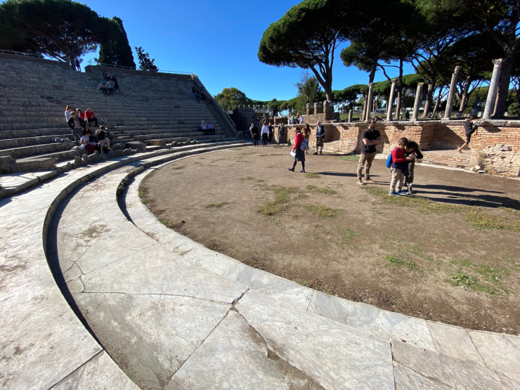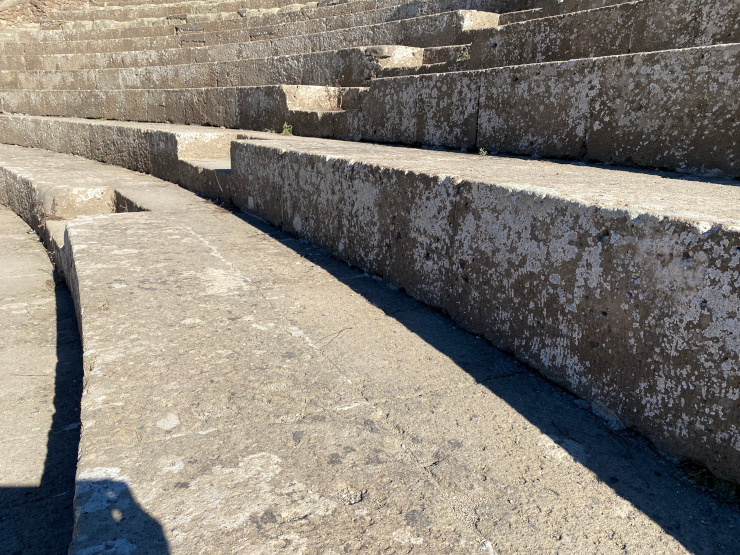 Nella tarda età imperiale fu costruito un parapetto marmoreo che serviva a isolare la cavea (gradinata) dall’orchestra durante lo svolgimento di spettacoli acquatici.