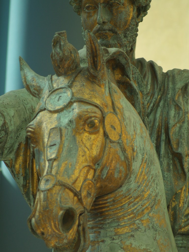 La Statua di Marco Aurelio si trovava al centro della piazza del Campidoglio dal 1538. La piazza era stata disegnata da Michelangelo proprio per darle massimo risalto. Ma l’esposizione della statua per secoli agli agenti atmosferici la stava deteriorando, gravi processi corrosivi in atto mettevano a rischio il monumento, in particolare a causa delle fessure sulle zampe. A partire dal 1981 fino al 1988 la statua fu sottoposta a restauro.
