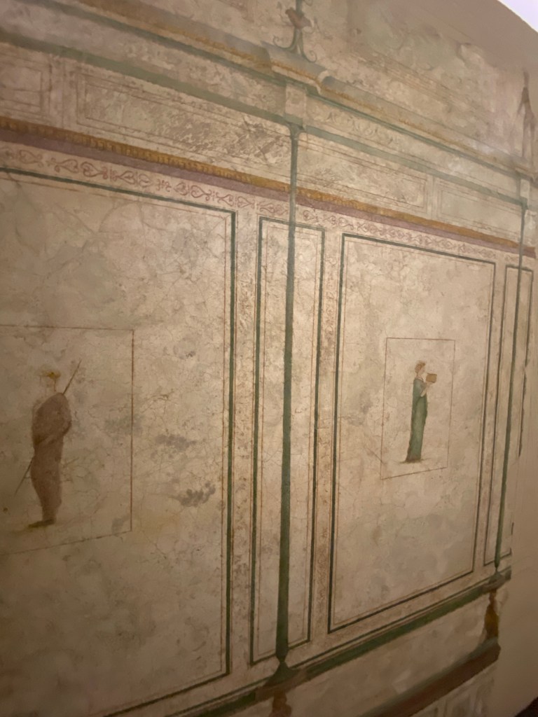 Le immagini presentano vari riferimenti al mondo femminile: i quadretti sulle pareti lunghe dell’anticamera mostrano fanciulle impegnate in varie attività, mentre sulla parete di fondo dell’alcova, dove è un quadretto con soggetto amoroso, la dea Artemide appare nelle duplici vesti di cacciatrice e Luna. Sul lato opposto sono raffigurate due Muse.