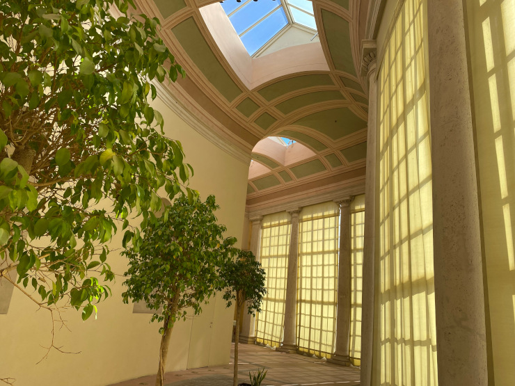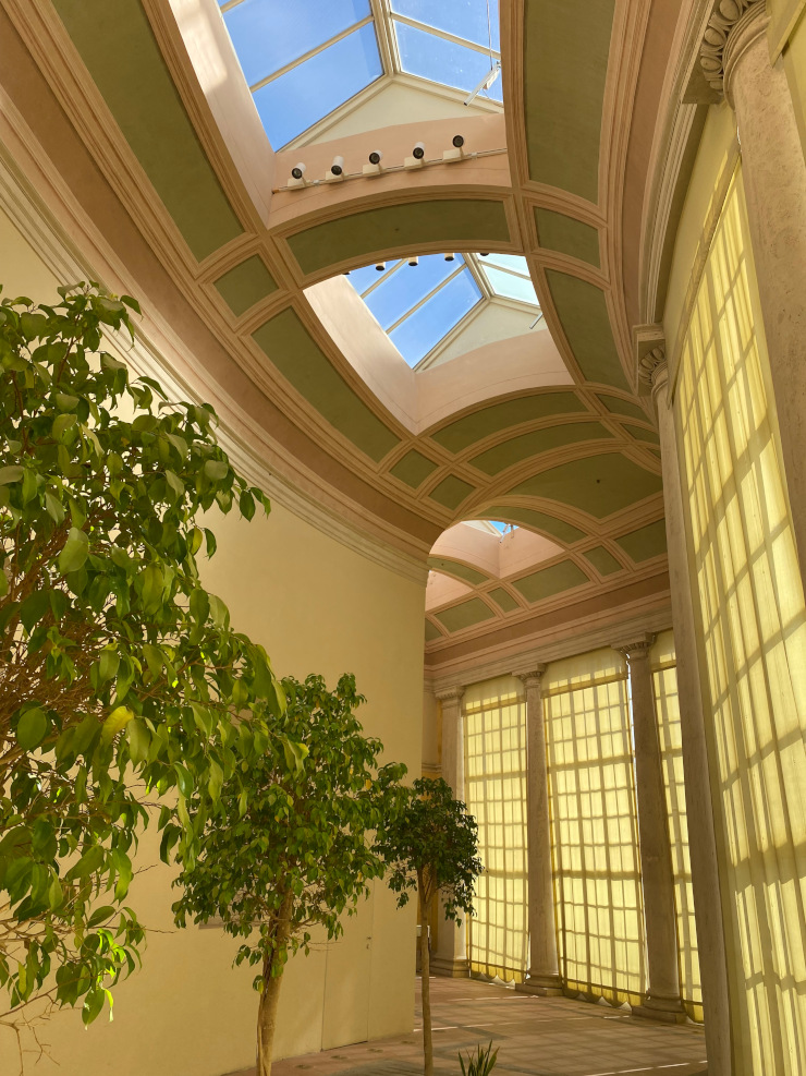 Nel restauro è stato ripristinata la partitura geometrica delle volte, nei delicati toni del verde e del rosa.