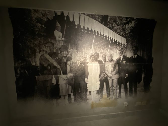 Scenderete per alcuni gradini e vi troverete nel primo ambiente, il rifugio antiaereo. Siamo a pochi metri di profondità sotto la sala da ballo del Casino Nobile. Vi immergerete nell’atmosfera degli anni precedenti alla guerra, grazie alle foto della famiglia Mussolini che qui aveva la sua residenza. Un serie di video dell’Istituto Luce del tempo vi racconteranno brevemente gli incontri di Mussolini con personaggi famosi del tempo prima della guerra, il matrimonio della figlia Edda con Galeazzo Ciano nel 1930 e la creazione degli orti di guerra durante il secondo conflitto mondiale.