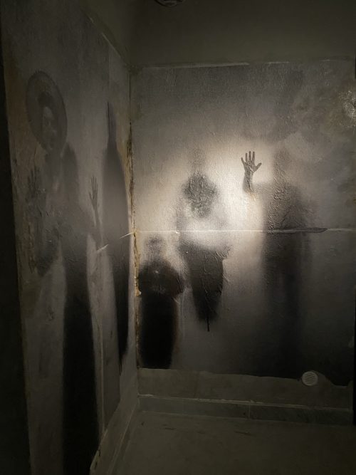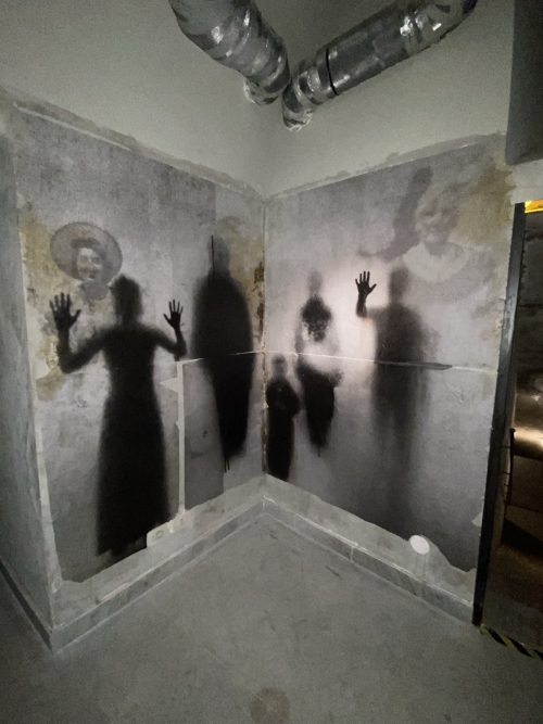 Procedendo vi troverete in altri ambienti, e sarete seguiti dalle proiezioni di persone, vestite con abiti degli anni 40, che entreranno nel rifugio con voi con un sottofondo musicale.