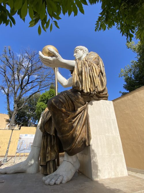 Il Giardino di Villa Caffarelli, che ha accolto la riproduzione integrata in scala 1:1 del Colosso di Costantino, insiste in parte sull’area occupata dal Tempio di Giove Ottimo Massimo, che un tempo ospitava la statua di Giove, forse la stessa da cui il Colosso fu ricavato o che comunque ne costituisce il modello di derivazione.