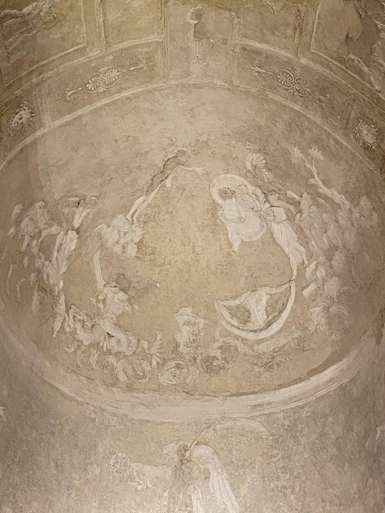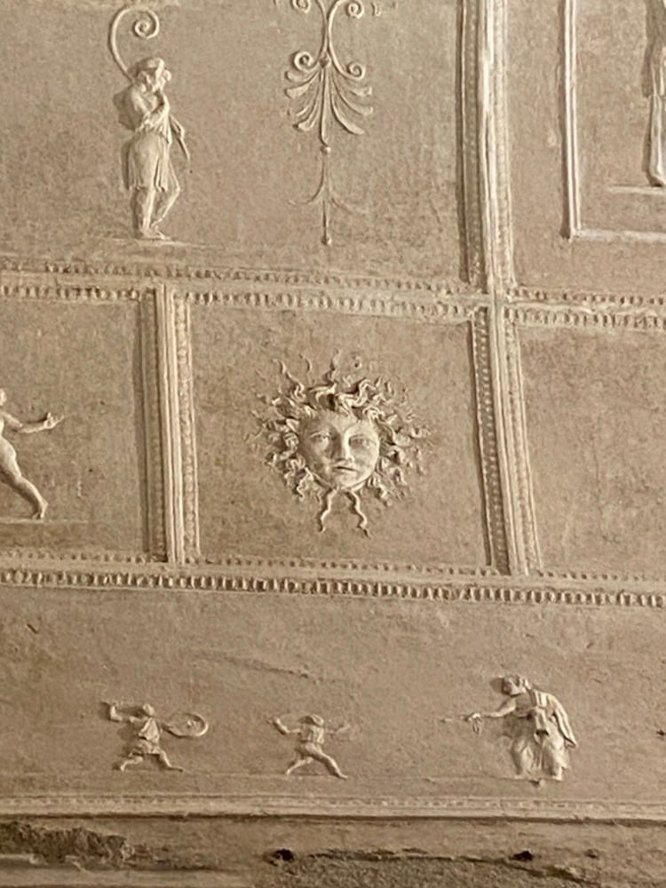 I miti rappresentati negli stucchi incarnano i principi fondamentali del neopitagorismo. Attraverso simboli e allegorie, raccontano il viaggio dell’anima che, passando attraverso prove e purificazioni, si libera dalle impurità del mondo materiale e raggiunge l’unione con il principio divino.