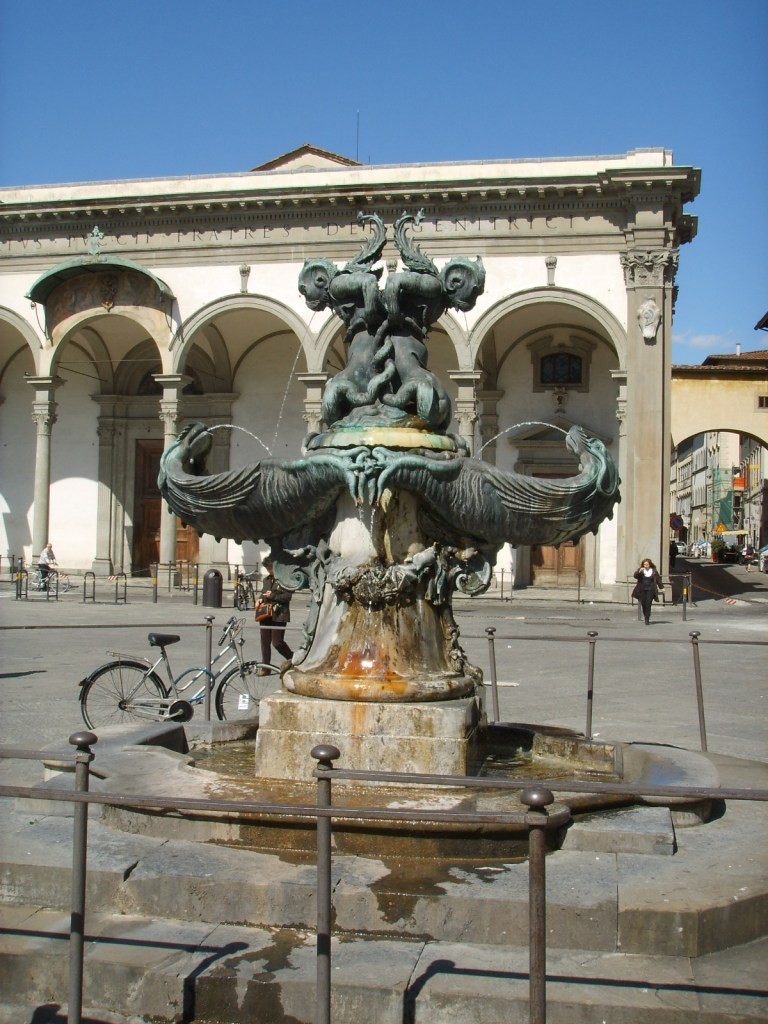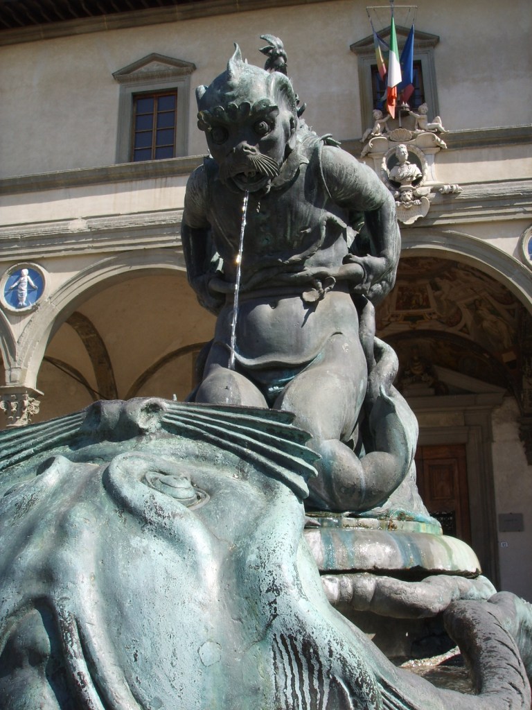 L’opera originale di Pietro Tacca, uno dei maestri della scultura manierista, fu inizialmente concepita per Livorno ma venne infine collocata a Firenze. Le fontane originali, celebri per i dettagli naturalistici e i festoni marini con pesci, crostacei e alghe, rappresentano una rottura rispetto ai tradizionali canoni artistici dell’epoca. Elementi come le vasche a forma di conchiglia e i mostri marini, che vomitano acqua dalle bocche rivolte verso il basso, testimoniano l’innovazione artistica di Tacca.