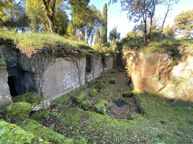 Tombe a tumulo: strutture circolari con tamburo in tufo, sormontate da un tumulo di terra.