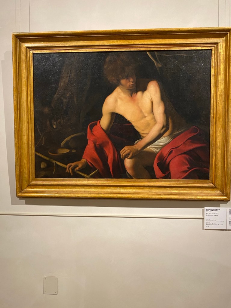 Il dipinto “San Giovanni Battista” di Caravaggio, realizzato tra il 1603 e il 1606, rappresenta il santo nel deserto mentre riflette sulla sua vocazione. La figura è animata, con un uso drammatico della luce. Oggetti simbolici nel paesaggio evidenziano la sua dimensione ascetica e il destino profetico.